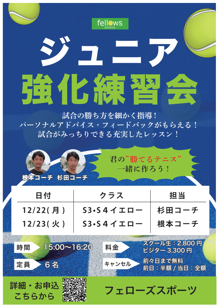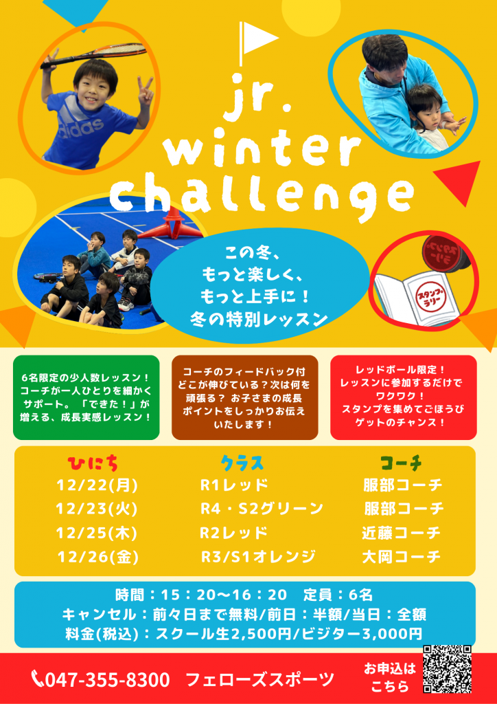 フェローズスポーツでは、この冬、ジュニア向けの特別レッスンを開催します!