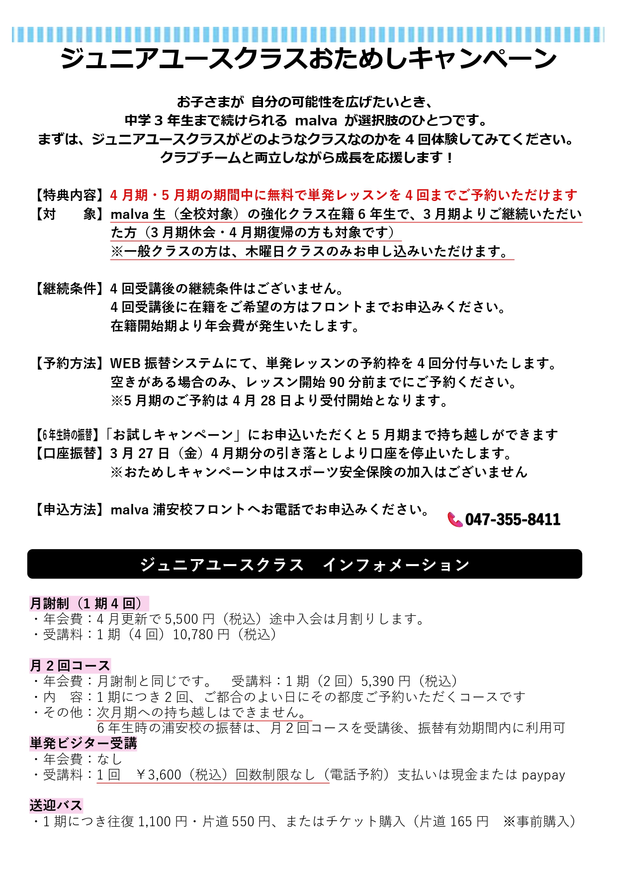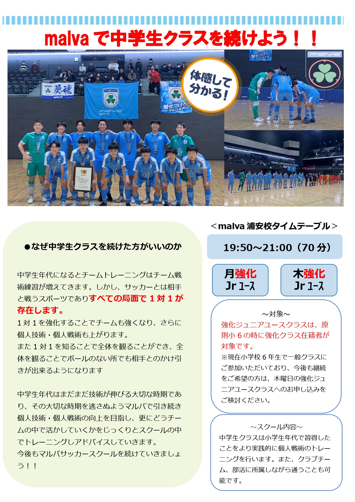 【malva】6年生へジュニアユースクラス \おためしキャンペーン/ のご案内