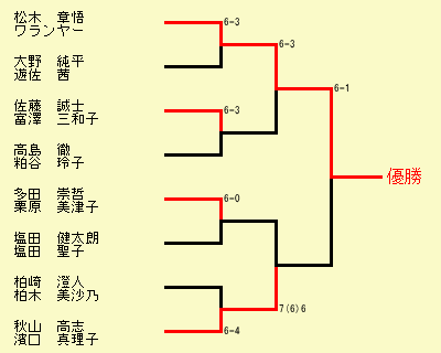 フェローズで行われているテニス大会の結果です。