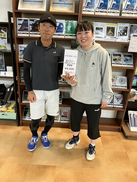 | まさか優勝できると思ってなかったので、優勝できてうれしいです。 ペアの後輩のハードヒットに助けられました! 本当に嬉しいです! |