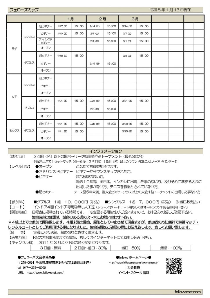 - 2026.02.06 フェローズ総合 テニス浦安 テニス大会 ダンス サッカー ゴルフ